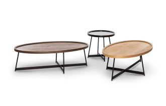 שולחנות סלון עגולים עם רגלי מתכת וטופ פורניר